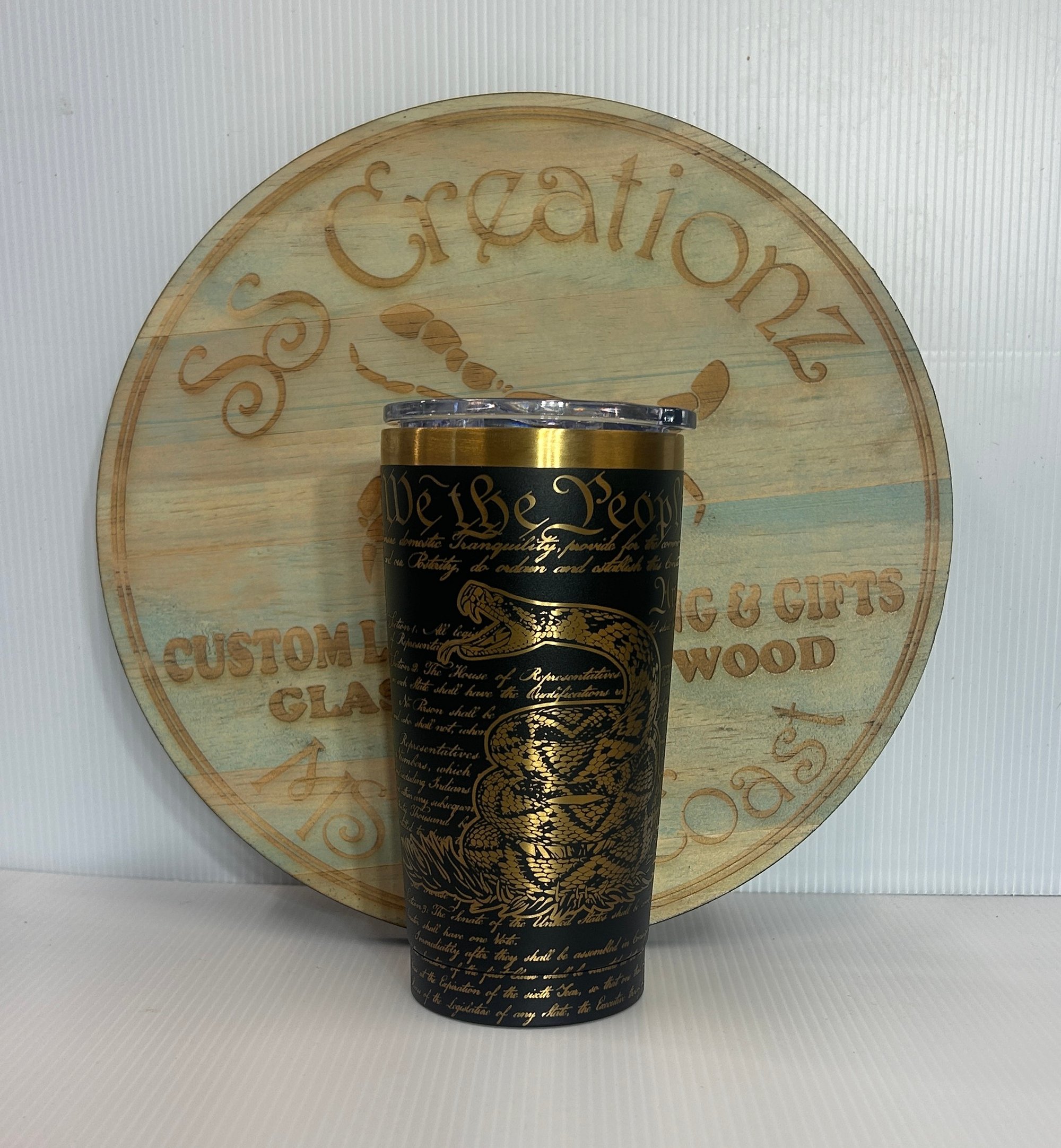 New 20oz tumblers. Black n Gold - Don't Tread On Me / We The People wrap around design! Free shipping.